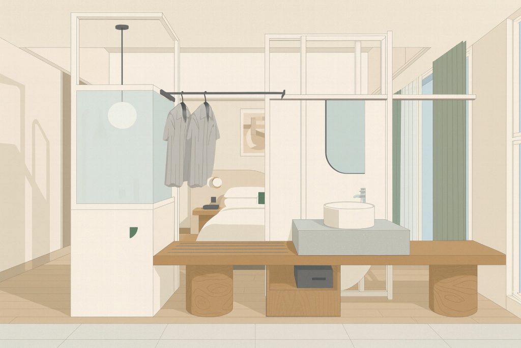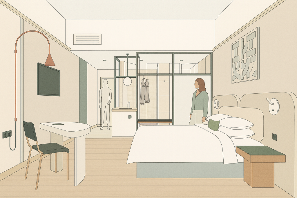 Each room at IKI is designed with balance of essentials in mind — light, space, and comfort in simple harmony.